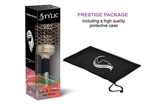 STYLIC Special Edition Nano Heat Thermal Ionic & Ceramic Round Barrel Hair Brush for Straightening, Curling and Styling, 2 Inch, Protective Case Included