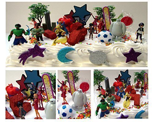 Big Hero 6 Birthday Cake Topper 26 Piece Set Featuring Hiro Hamada, Baymax, Go Go Tomago, Honey Lemon, Wasabi and Fred, Big Hero 6 Super Hero Characters and Other Decorative Themed Accessories - Cake Topper Set Includes All Items Pictured