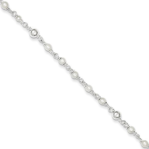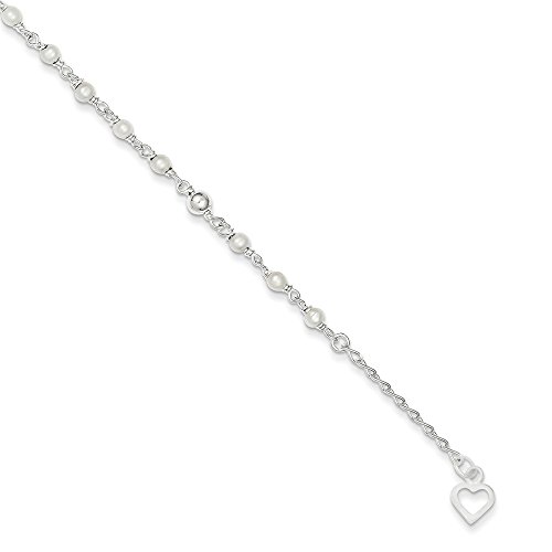 -. Title : .925 Sterling Silver 3.00MM Freshwater Cultured Pearl & Heart Anklet Bracelet, 10 Inches