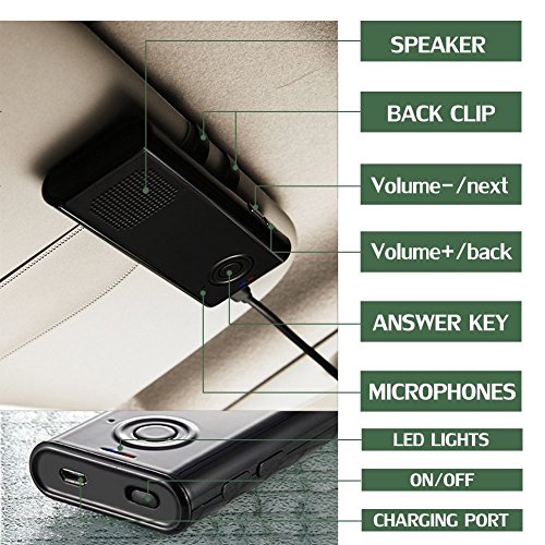 AMAKE Bluetooth 4.1 Hands-free Sun Visor In-Car Speakerphone Wireless Speaker Car Charger Speakerphone Car Stereo Hands-free Bluetooth Speakerphone Adapter Car Kit with Mic for iPhone 7/7 Plus Samsung