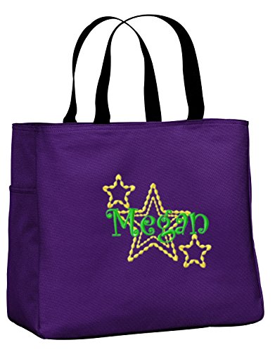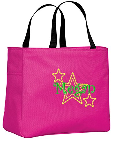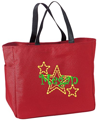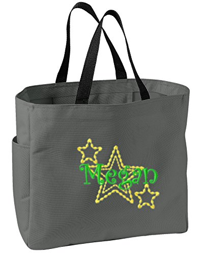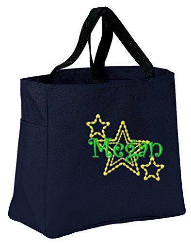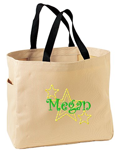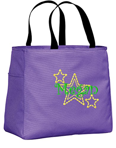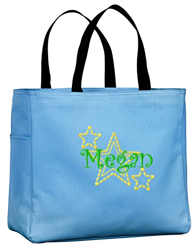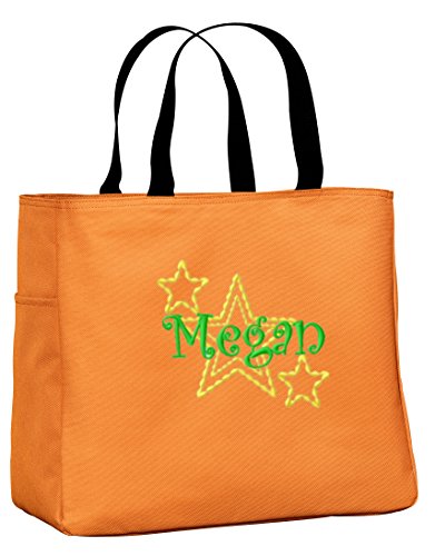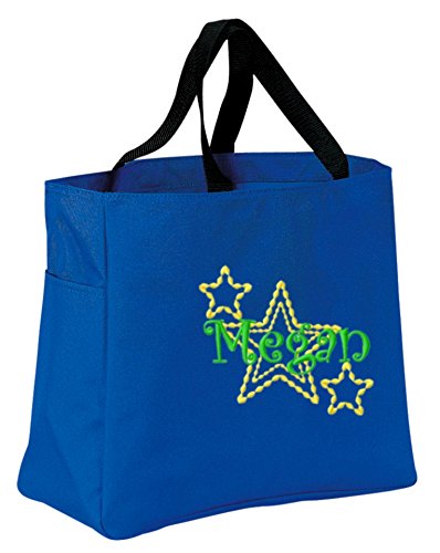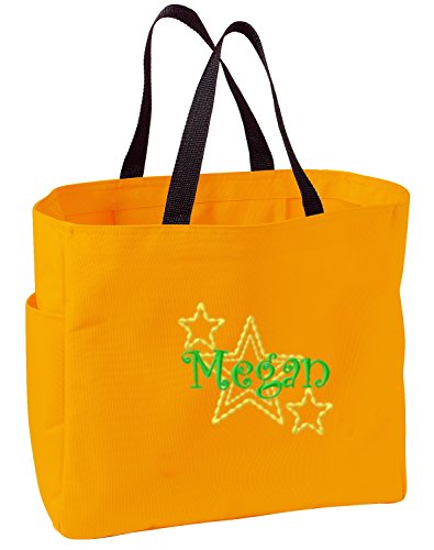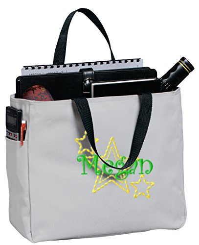 Product Description Extras Large Main Section with Small Interior Self-Fabric Pockets Keeping organized while on the go has never been easier thanks to this Stars personalized, heavy-duty canvas essential tote bag with web fabric handles by all about me company. This tote bag by all about me company is the perfect companion for a day at the beach, the flea market, or in the office, and is roomy enough to fit all your essentials. This bag also comes with an inside pouch that can be used to hold pencils, pens, or other small items. Material 600 Denier Polyester Canvas makes this bag heavy enough to hold anything you can fit into it without worrying about rips or tears. The seams on this bag are tightly sewn to ensure it will not break apart when put to the test because you deserve the best! Size The measurements for this bag are 12 inches wide by 12 inches high by 6.5 inches deep with approximately 930 cubic inches of space. This makes it big enough to carry multiple essential items such as your wallet and sweater, in addition to other accessories such as sunscreen, water bottles, books and much, much more! The bag also comes with an exterior side pocket to hold other smaller items like a small notepad and pen. It can also be used as an extra shopping bag at farmer?s markets and flea markets. Closure and Handles This bag comes with strong, webbed straps that are made of heavy duty material that can hold everything you ask you it to. The handles are sewn into the inside of the bag and are built to withstand everything you can stuff into this bag. Color NEED TO CHECK 0