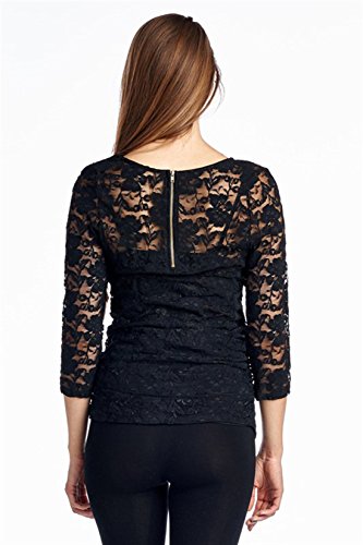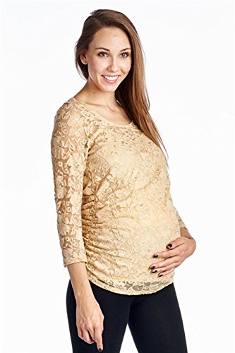 Product Description You'll be in "Outer Lace" when you slip on this fashion forward lace maternity top.90% Nylon 10% Spandex Made in the U.S.A. Hand wash 0