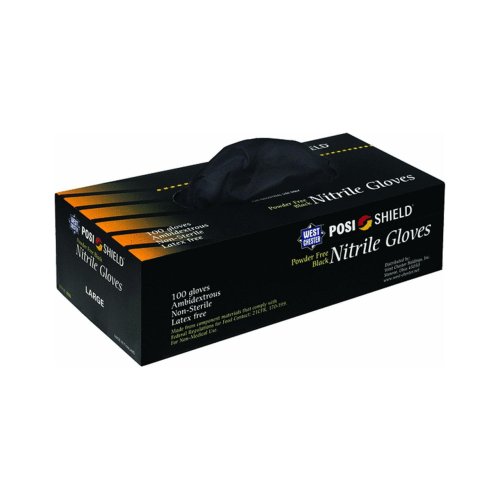 WEST CHESTER 2920/L Nitrile Powder Free Disposable Gloves, Large, Black, 100-Pack