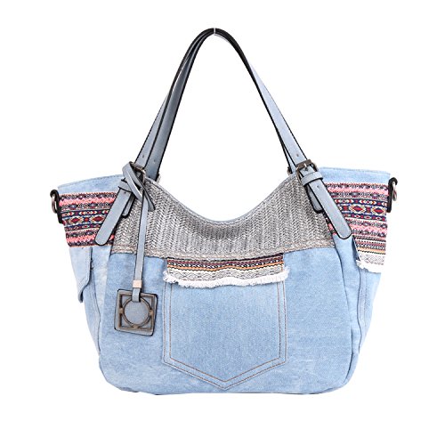 -. Title : Angelkiss Women Exotic Jeans Tote Large Denim Shoulder Handbag 9181-1