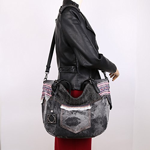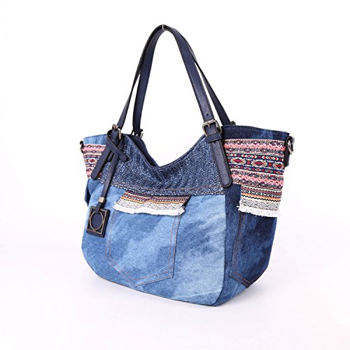 -. Feature : Imported denim materials - soft and durable;delicate needlework - practical and elegant / Top handle with high-end pu leather, offer 2 carrying options: handbag or shoulder bag, great for all occasions. / High-quality and durable zipper, glides smoothly, no snags around the corner. / Plenty room can hold your daily supplies such as ipad, books, umbrellas, wallet and so on. / Size: 19.2''*5.9''*12''(L*W*H); 11''(handle)