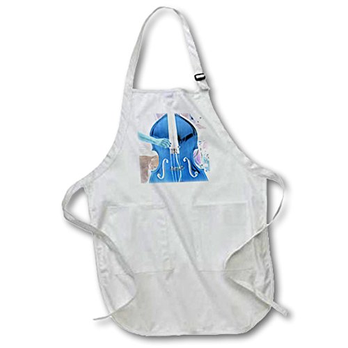 3dRose Upright Bass Invert Blue - Full Length Apron, 22 by 30-Inch, Black, with Pockets (apr_185219_4)