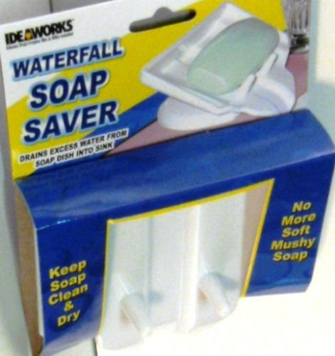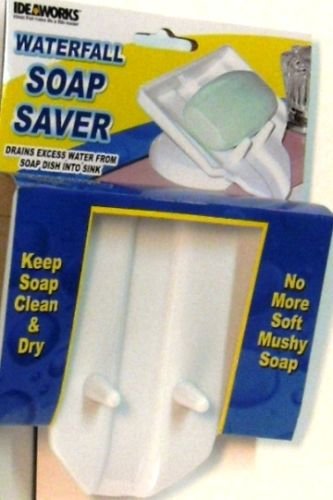 -. Feature : WaterFall Soap Dish Drains Excess Water from Soap Dish into Sink Keep Soap Clean & Dry NO More Soft Mushy Soap. / This Clever Soap Dish Drains Excess Water Away from your Soap Right in to the Sink. Works Instantly. This Keeps your Soap DRY and Mush Free. Make your Soap Last Longer. Saving you Money All Soap Dishes are White, So they Match almost every Decor. / Made from a Durable Polypropylene Plastic Size Approx. 5 1/2" (inch) wide x 2 1/2" (inch) tall / Holds all Standard Sized Soap Bars/Sponges/Scrub Pads/Cleaning Pads/ to Keep them Dry & Mess Free. / 1 pc