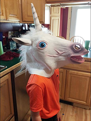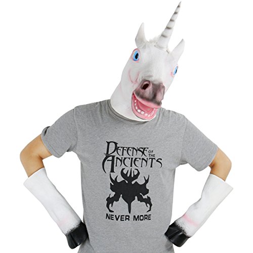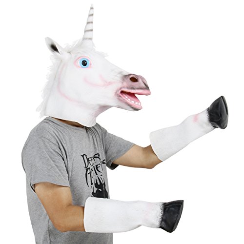 -. Title : White Unicorn Horse Head Mask Hooves Gloves Halloween Costume Adult