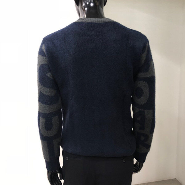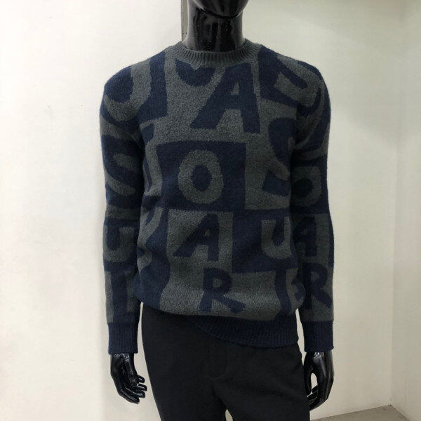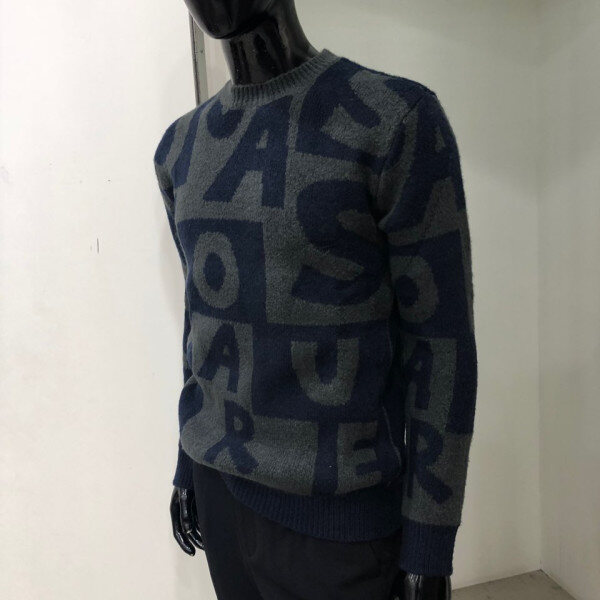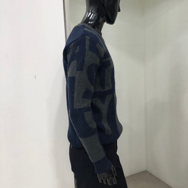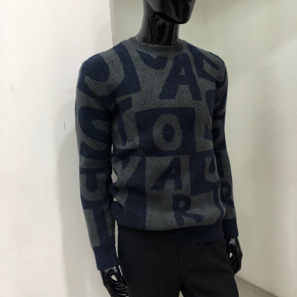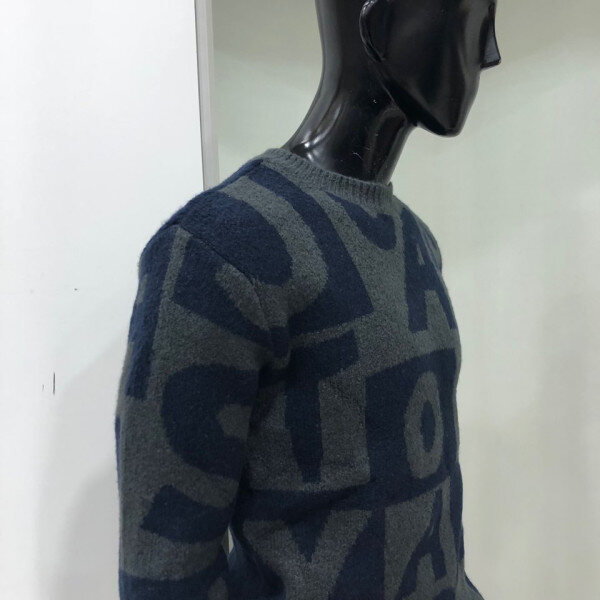 헤어리한 원사를 사용하여 따뜻한 느낌을 주며 전체 레터링 패턴을 사용한 유니크한 스웨터 입니다.