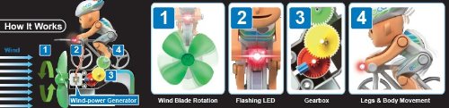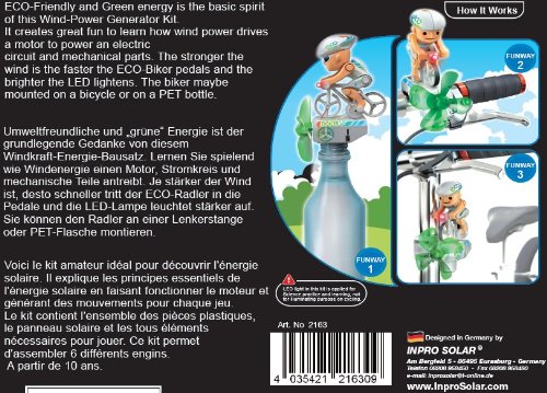 Eine ausfuhrliche mehrsprachige Bauanleitung ( DE, EN, FR ) begleitet jedes Kind / Erwachsenen Schritt fur Schritt durch jede Aufbaustufe. vom Wind angetriebener Radler - Windkraft spielerisch erleben und Eindrucke schaffen