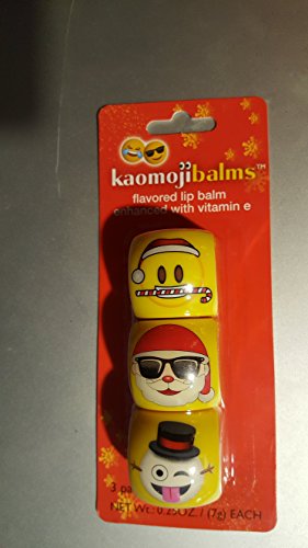 set pof 3 Kaomojibalms flavored lip balm SANTA WITH CANDY CANE/frosted mint, SANTA WITH SUGLASSES/French Vanilla, WINKING...