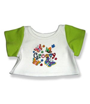 -. Binding : Toy -. Brand : The Bear Mill -. EAN : 0611265002984 -. Feature : White t-shirt with green sleeves / Groovy text on front with multicolored butterflies / fits 15 inch plush -. Label : The Bear Mill -. Manufacturer : The Bear Mill -. MPN : 2029 -. PackageQuantity : 1 -. PartNumber : 2029 -. ProductGroup : Toy -. ProductTypeName : TOYS_AND_GAMES -. Publisher : The Bear Mill -. Studio : The Bear Mill -. Title : Groovy T-Shirt - 2029 Fits 15" - 16" bears, includes Build a Bear, The Bear Mill, and Stuff your own Animals. -. UPC : 611265002984