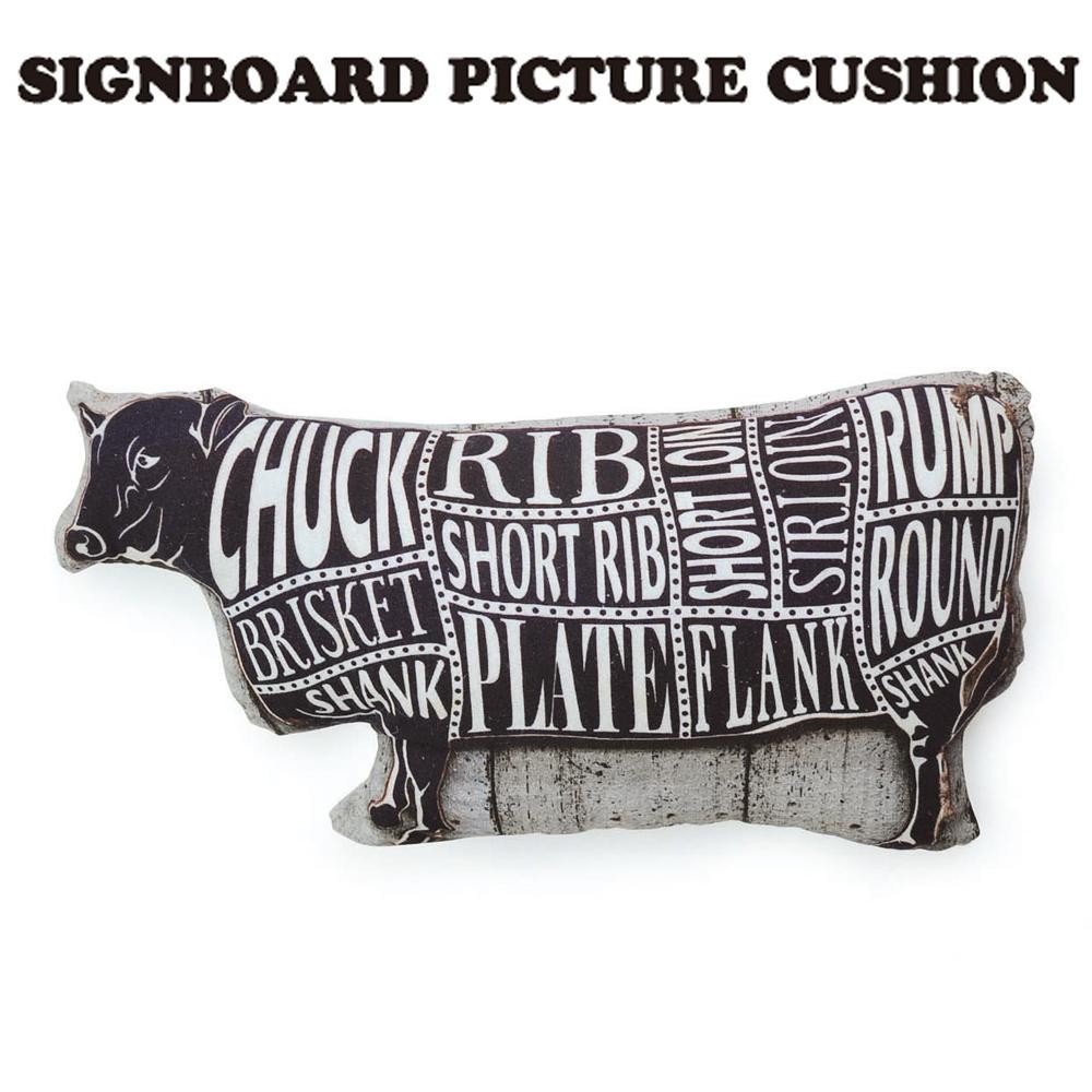 お部屋のインテリアのアクセントに最適です。 製造国:中国 素材・材質:ポリエステル 商品サイズ:約W50×D11.5×L20cm 仕様:洗濯不可 ※サプライヤー直送品 ご注文後5~6営業日後の出荷となります【商品名】キーストーン サインボード ピクチャークッション ビーフミート SIPICUBF