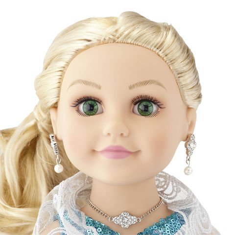 This beautiful Journey Girls Holiday Doll is sure to become a valued addition to your Journey Girls collection. She is all dressed up for a night of elegance and sophistication in this stunning teal gown with a sequined bodice and flowing layered skirt. A wide band at the waist features a bow accent and gorgeous earrings, necklace and bracelet add touches of sparkly flair. The sheer glitter cape with a rhinestone closure and Clutch Purse complete this striking look for an amazing evening out on the town. The Journey Girls Special Edition 18-inch Fashion Doll - Caucasian Features: 1 Journey Girls 18-inch Doll 1 Teal sequin flowy stunning holiday gown Wide waistband with bow accent Earrings, necklace and bracelet Sheer glitter cape with rhinestone closure Doll has blue eyes and long flowing blonde hair