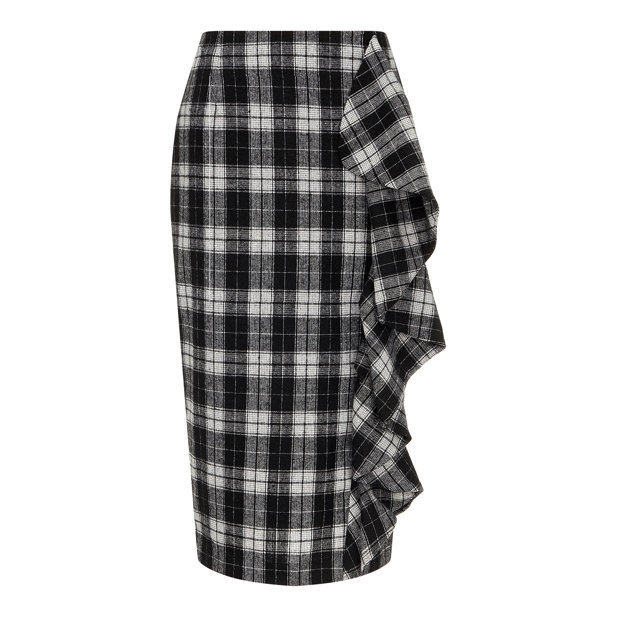 컬렉션 : 2017 Spring/Summer 디자인 포인트 : - 체크 패턴 디테일이 돋보이는 트렌디한 무드의 스커트- 러플 장식 디테일이 페미닌한 느낌을 주는 디자인- 콘솔 지퍼 클로징이 있어 착용이 간편한 아이템 스타일링 추천 : 베이직한 셔츠 혹은 가벼운 니트웨어와 트렌디한 스타일링을 할 수 있음