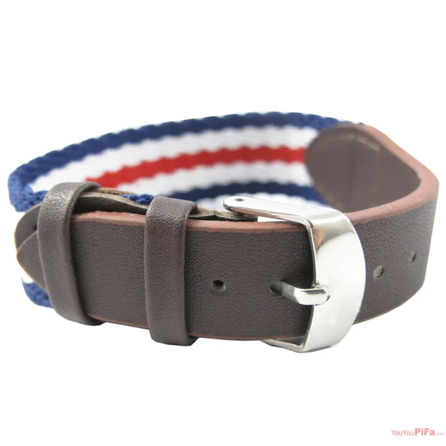 | [해외]새로운 스타일의 부드러운 PU 가죽 나일론 팔찌 시계 밴드 여러 가지 빛깔의 18 미리메터 폭 33 센치메터 길이 시계 스트랩 |