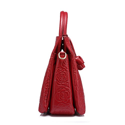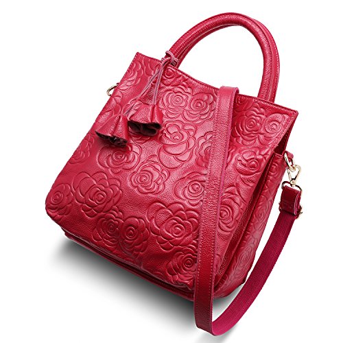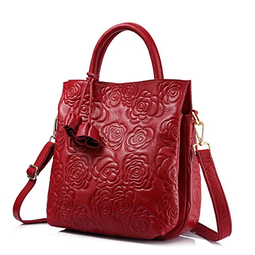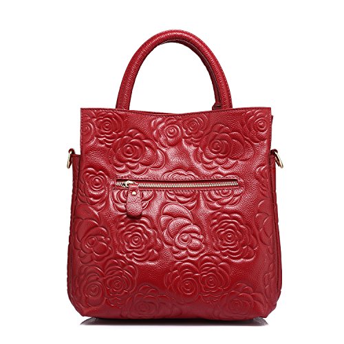 1.100% brand new and high quality.This modern handbag is made of genuine leather,it is easy to clean and long lasting. The unique rose floral embossed pattern adds this bag a stylish appearance. 2.Classic simple design,compact and lightweight is a timeless choice for day-to-night sophistication.An unique Gift idea! 3.Three colors for selection,it can match various styles of tastes. 4.Roomy open compartment provides ample storage with quick and easy access for all of your essentials. Such as books, Ipad, cell phone, wallet and other small belongings.