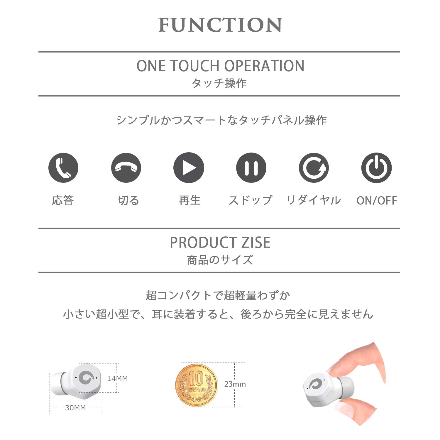 【超軽量/長持ち】片耳はわずか5gだけ、耳の中に収まりお洒落です。耳の負担が軽く、収納ケースに吸着して紛失の心配ありません。約1-2時間で充電が満タンとなり、45時間~60時間までの待機時間あり、通話時間が約5-6時間、音楽を再生にすると片耳約5時間、両耳約2.5時間可能です。