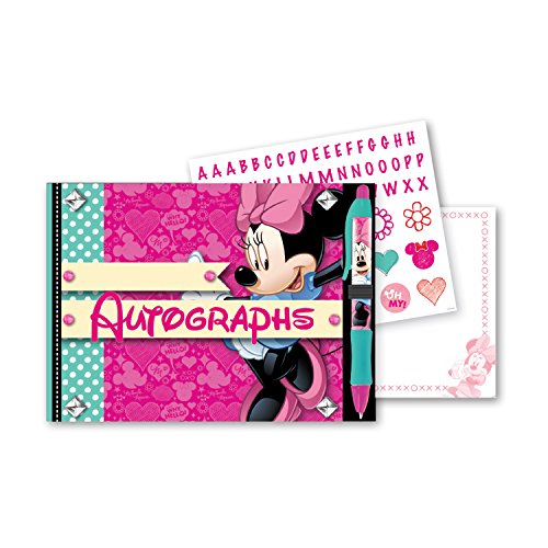 Create your own personalized Disney's Mickey Autograph Book. The first page of the book is a full color sticker sheet page, allowing you to personalize the cover and individual pages. Add your imagination to our gem studded padded cover and you have the cutest personalized autograph book around. This 8” x 5 7/8” with 50 one color printed pages comes complete with a full color character themed ballpoint pen. Capture all your favorite Disney character's autographs next time you visit the park!