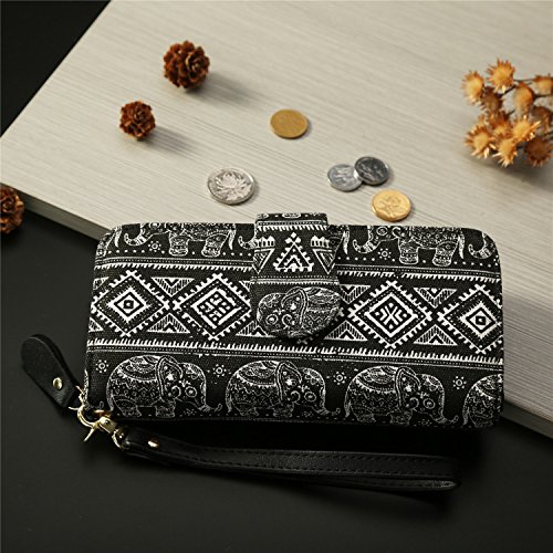 Women Wristlets Bohemian Elephant Snap Wallet Zip Around Purse Long Card Clutch with Strap