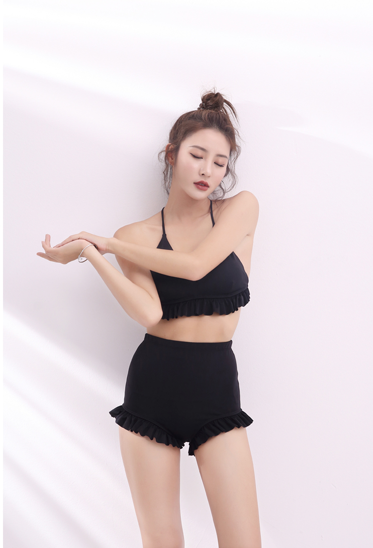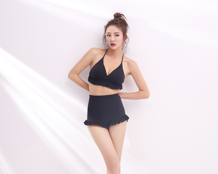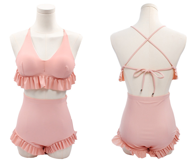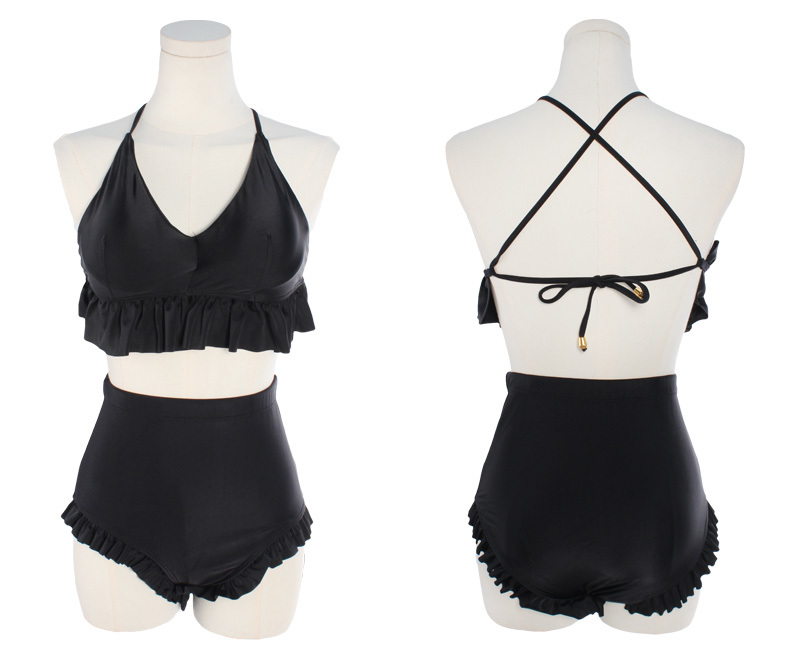 【関連キーワード】シンプル 無地 ビキニ フリル ホルターネック ハイウエスト バックシャン 体型カバー レディース 水着