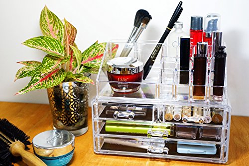 Smooth, rounded-edge design and stackable options keeps bathroom vanity or bedroom makeup table clutter free. The perfect gift for you or that special someone.