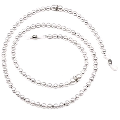 -. Feature : Package included 1 pcs eyeglass chain,the full length 29inch / A fashion and charming eyeglasses chain with imitation pearl,make your glasses unusual / Ideal for decorating your reading glasses, eyeglasses and sunglasses / The beads are strung on a super strong and flexible steel cable / Adjustable rubber grips with silver plated coils, Easy to install and remove, for convenient to use