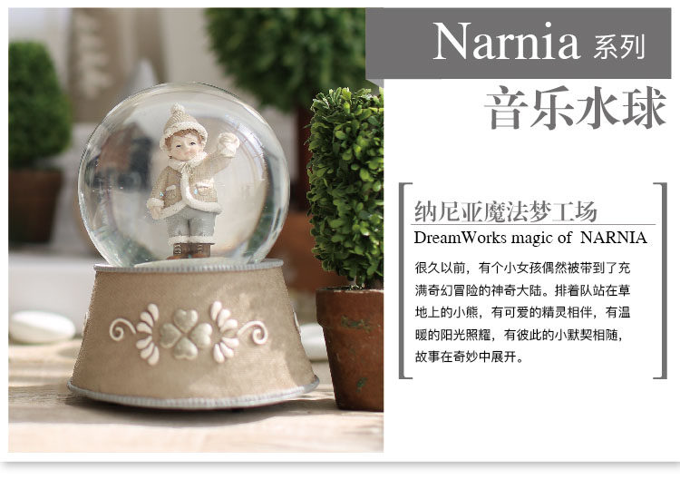 米子家居  八音盒音乐盒摆设生日礼物工艺摆件  纳尼亚音乐水晶球