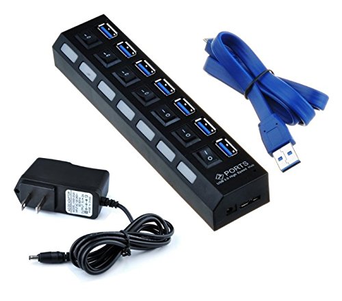 -. Binding : Electronics -. Brand : RTH Sales Corp. -. Color : Blue -. EAN : 0759614685478 -. Feature : VERSATILE: 7 USB 3.0 Hi-speed female ports, fully compliant with USB 3.0 specifications and backwards compatible with USB 1.1 & 2.0; Both bus and self-powered (AC and USB adapters included). / EASE OF USE: Features on/off switch for all USB 3.0 ports complete with blue LED switch indicator lights. / HIGH SPEED: Supports data transfer rates of 4.8 Gbps. / SAFETY: Individual port over-current protection. / COMPATIBILITY: Plug-and-play installation for Windows XP/Vista/7/8, Mac OS 10.2 or above, Linux 9 -. Label : RTH Sales Corp. -. Manufacturer : RTH Sales Corp. -. MPN : RTH0000008 -. PackageQuantity : 1 -. PartNumber : RTH0000008 -. ProductGroup : PC Accessory -. ProductTypeName : COMPUTER_ADD_ON -. Publisher : RTH Sales Corp. -. Studio : RTH Sales Corp. -. Title : 7 Port High-Speed USB 3.0 Hub (with 2ft Blue USB Cord and 5V 1A AC Adapter) by RTH Sales Corp. -. UPC : 759614685478