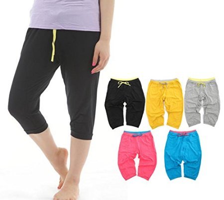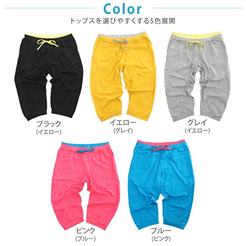 상품명: 경쾌하 움직이기 쉽 컬러풀 7 분키 스웨트 크로프드 팬츠 이지 팬츠 바지 요가 웨어 댄스 스포츠 휘트니스 짐 실내복 으로도 레이디스 (핑크(블루))