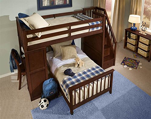 Studio : NE Kids Publisher : NE Kids Product Description Wood drawer pulls on cases. Mattress ready with complete slat system. No foundation required. Bed is on locking casters ease of making the bed and cleaning the space. Made from hardwood and veneer. Assembly required. Consumer Products Safety Commission. 80 in. L x 42.25 in. W x 25.5 in. H. The Stair Loft Lower Bed is designed to fit underneath the Loft and is equiped with locking casters ensuring this bed is easy to make and clean around. 0
