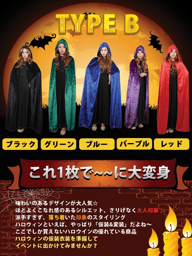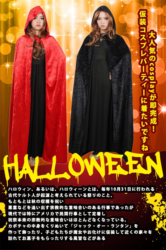 ハロウィン 衣装 マント フード付き 死神 デビル 悪魔 魔女 ウィッチ コスプレ 大人 メンズ レディース 男女兼用 男性用 女性用 仮装 変装 服 ブラック レッド グリーン ブルー パープル ハロウィーン ハロウイン パーティーグッズ イベント用品 余興 halloween cos