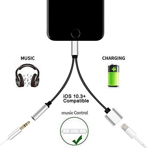 -. Title : ATETION [Upgrade] Iphone 7 / 7 plus Adapter, Compatible IOS 10.3,control music, 2 in 1 Lightning adapter and Charger,Lightning to 3.5mm Audio Earphone Jack Cable - No Calling Function