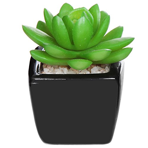 Set of 3 Modern Home Decor Mini Succulent Artificial Plants with Square Black Ceramic Pots - MyGift
