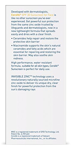 Ceram ides help repair and restore the protective skin barrier. Niacin amide helps the skin produce more natural ceram ides and fatty acids essential for repairing and restoring the skin barrier; may also reduce skin redness. High performance, water resistant sunscreen, suitable for all skin types.