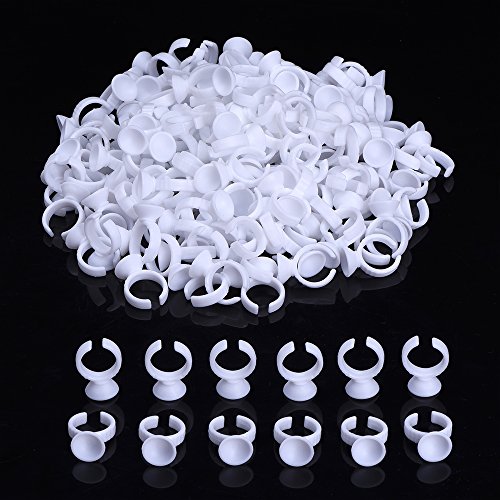 eBoot Makeup Glue Rings Tattoo Glue Holder Disposable Plastic Nail Art Eyelash Extension Rings, 200 Pack