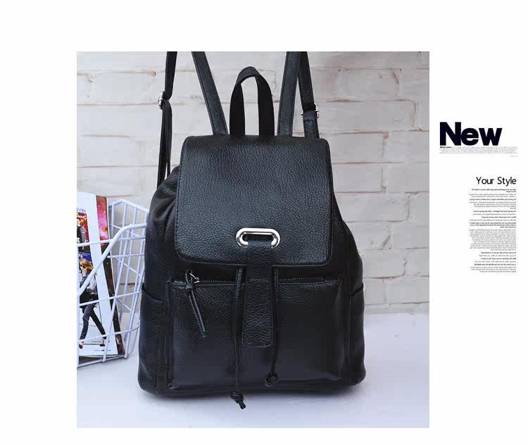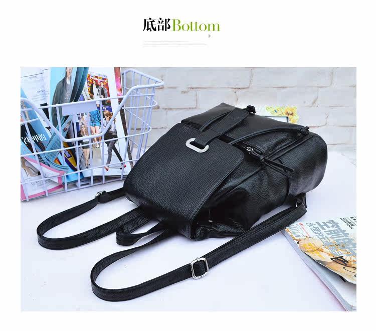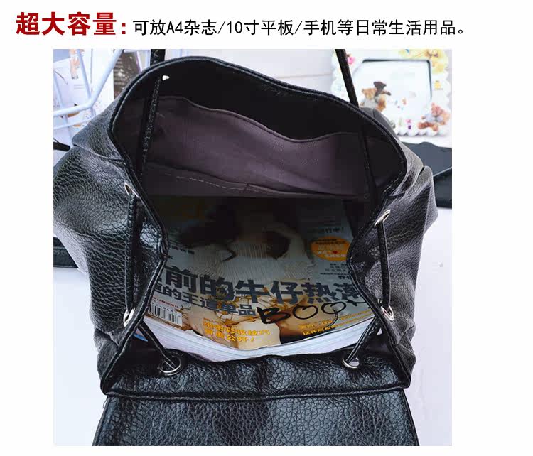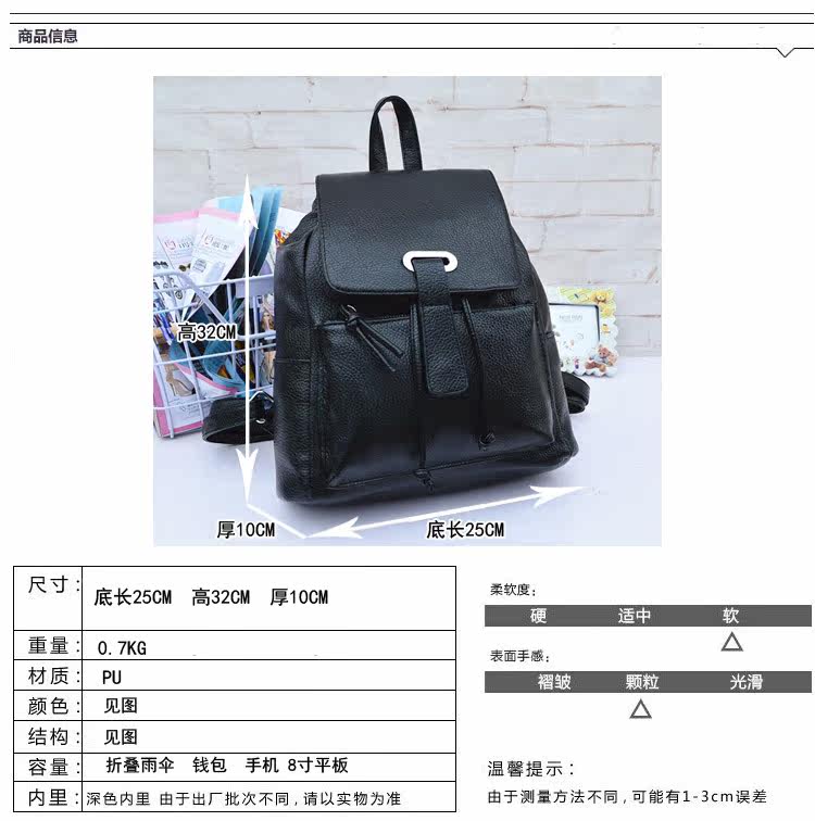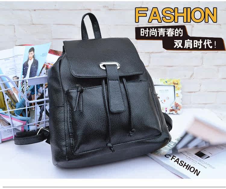 新款潮女士双肩包韩版个性百搭书包PU休闲女包旅行背包