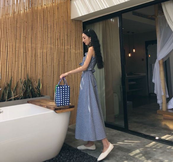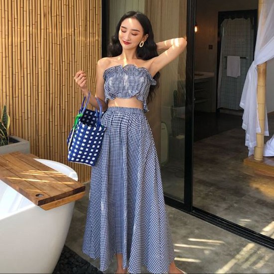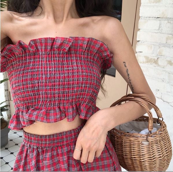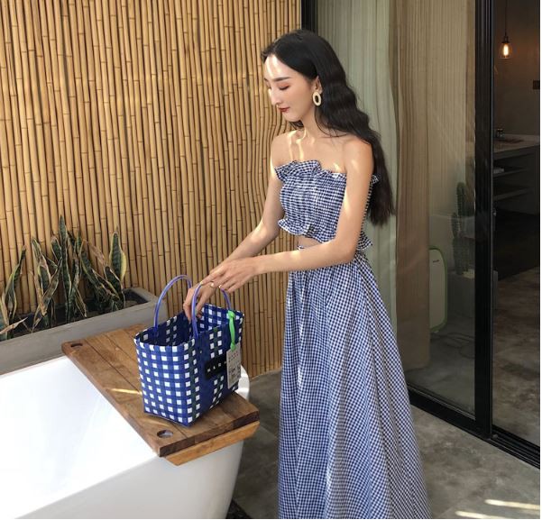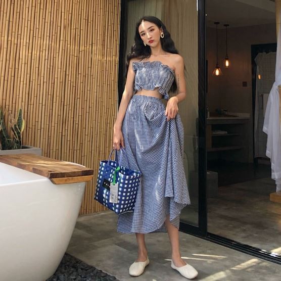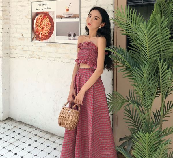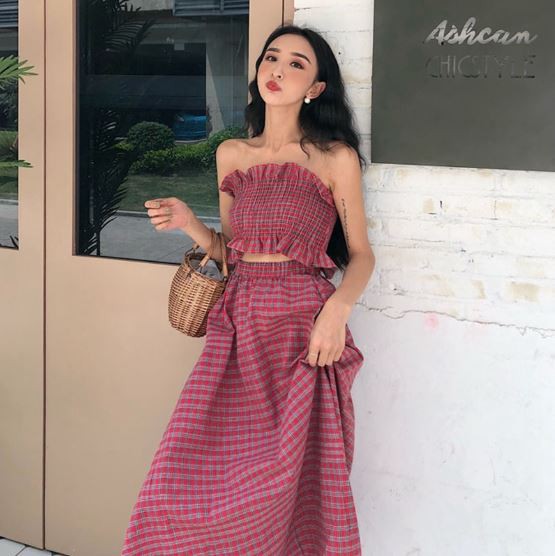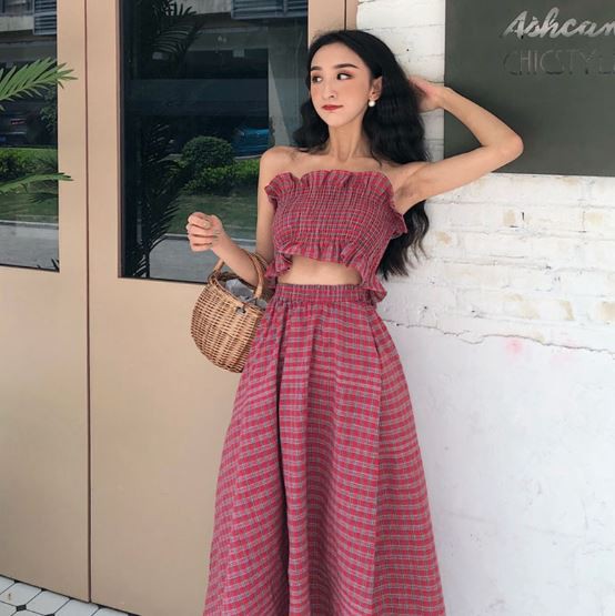 チューブトップ×ウエストゴムでラクチンきれい◎