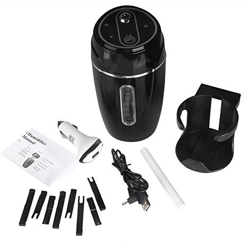 This aromatherapy diffuser is specifically designed for automotive use. Designed to fit in car drink holder and plug directly into the provided 12v USB adapter. Quickly increases humidity in car, and when you soak included cotton wick with essential oils, you can turn your commute from a stressful time you dread, to a calming environment you look forward to.