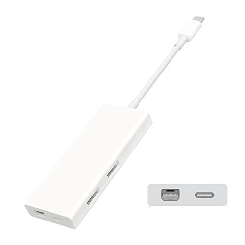 -. Feature : USB-C USB 3.1 Type C to Mini Displayport DP & Dual USB OTG & USB-C Female Charger Adapter for Laptop & Macbook / This adapter allows you to mirror your MacBook display to your miniDP-enabled TV or display in up to 1080p HD. / You can also connect a charging cable to the USB-C port to charge your MacBook. / Note: 1. The adapter cannot work for thunerbolt displays and thunderbolt device. / Note: 2. You can connect the extral miniDP to HDMI/DVI/VGA/DP cable to HDMI/DVI/VGA/DP displays.