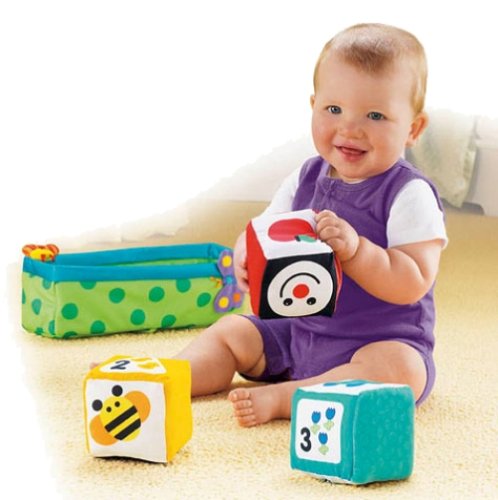 Intrigue your little one with this set of three soft activity blocks from Fisher-Price.