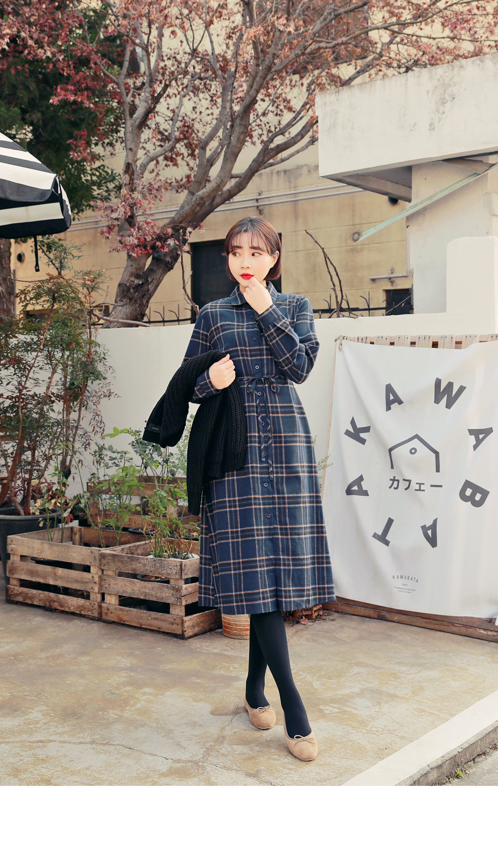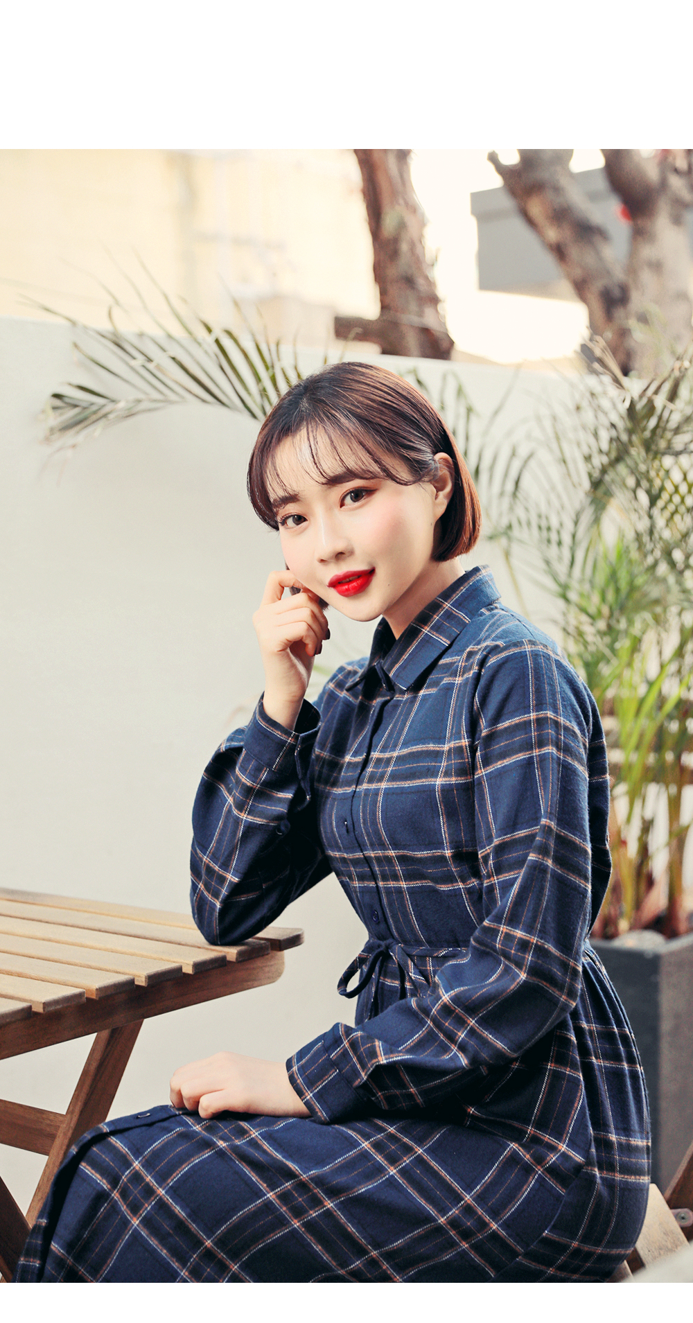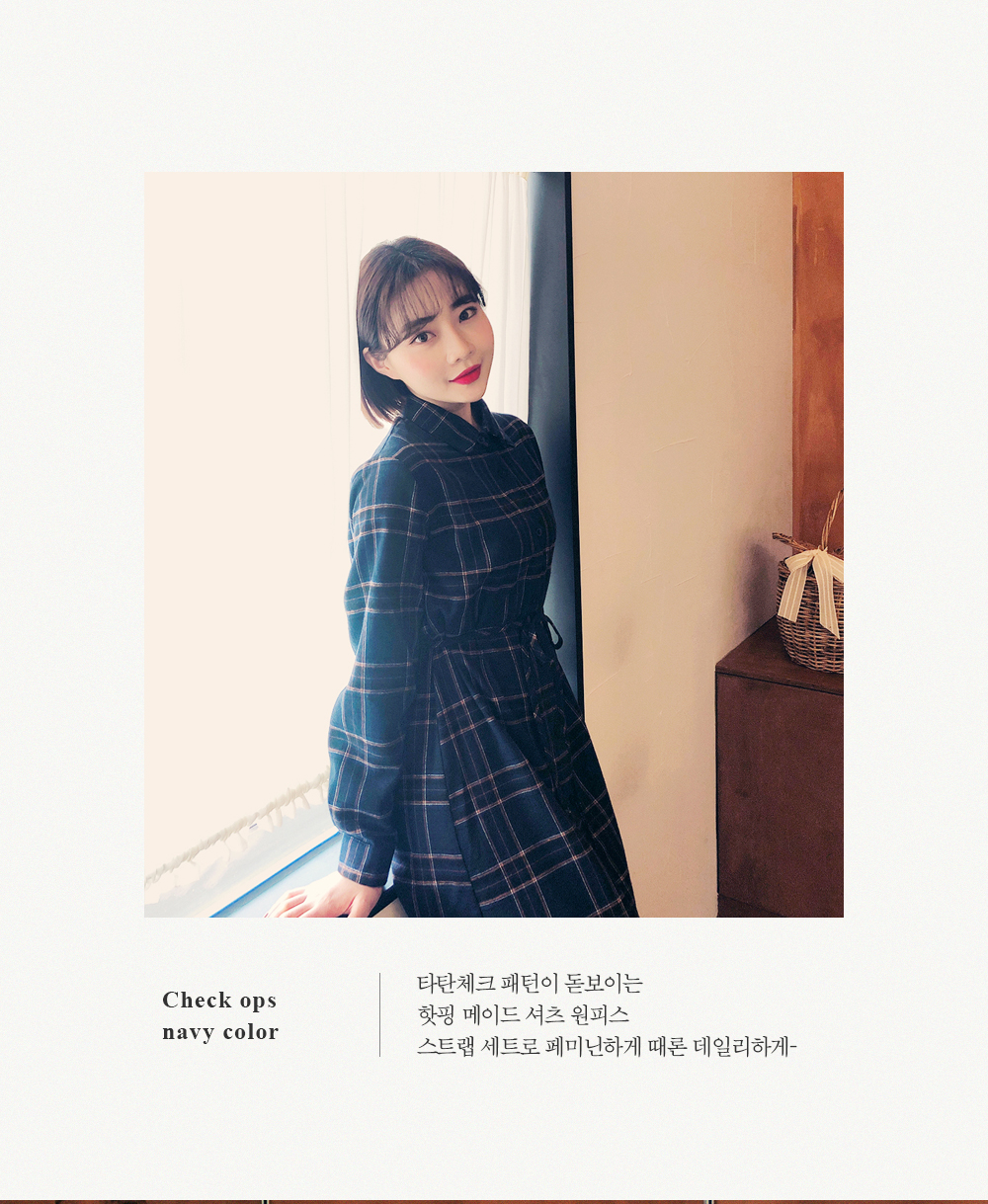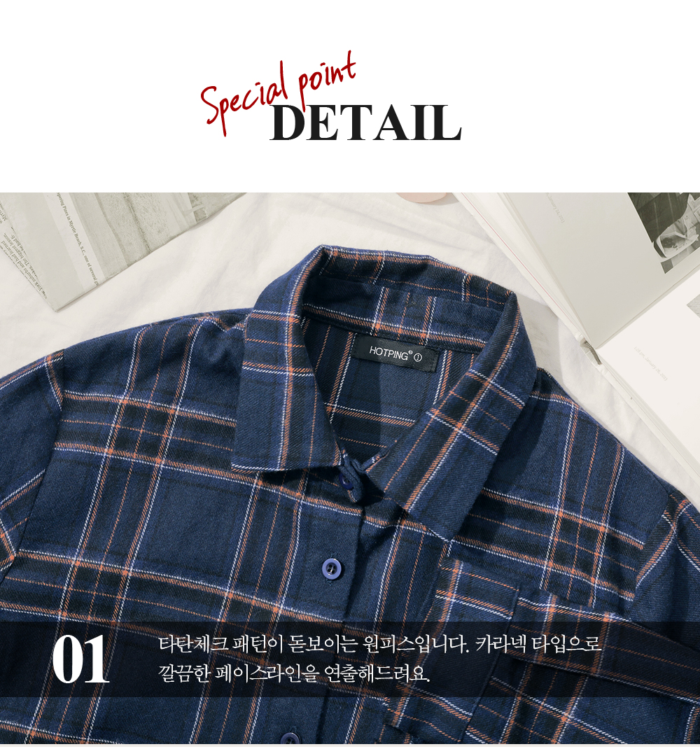 타탄체크 패턴이 돋보이는 셔츠원피스입니다.