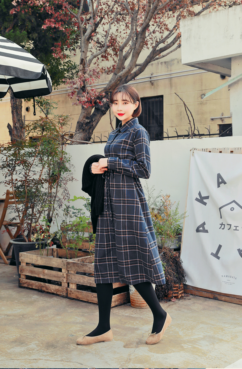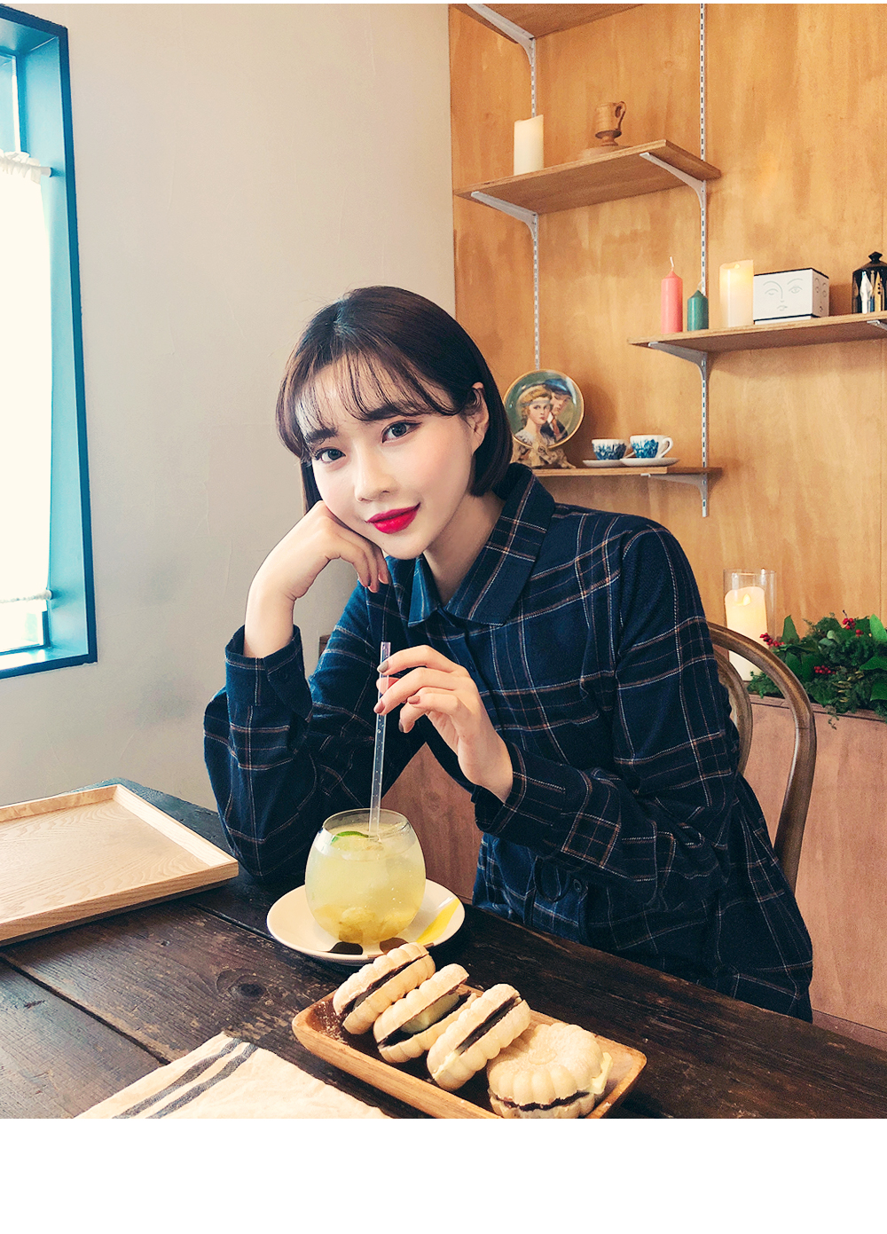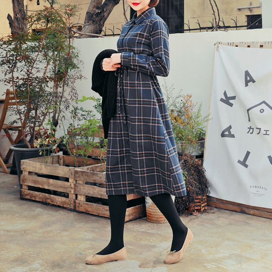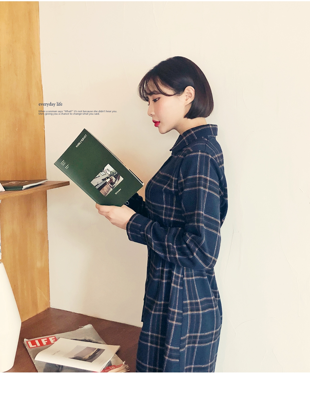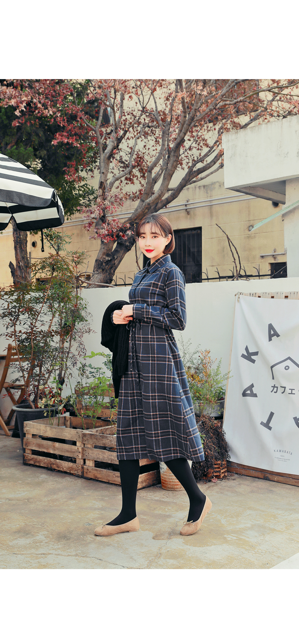 타탄체크 패턴이 돋보이는 셔츠원피스입니다.