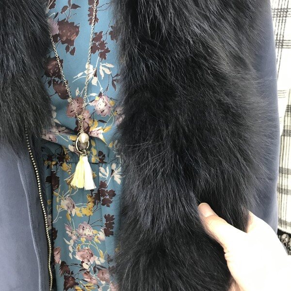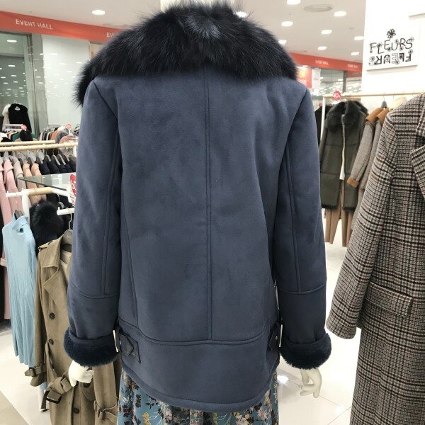 카라라인이 풍성한 허리선 무스탕 이예요라이더스타일이라 캐쥬얼하고 포인트있게입기좋아요블 루색상 이 예쁘게나왔어요퍼안감 으로 따뜻 하게입기좋아요