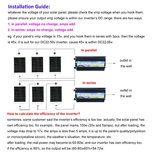 Easy to install, DC connect your solar panel(red terminals connect "+", black terminals connect "-"), AC connect your home grid