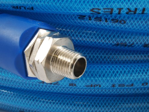 Forney 75442 Air Hose, Blue Polyurethane Flex with 1/4-Inch Male NPT Fittings On Both Ends, 1/4-Inch-by-50-Feet