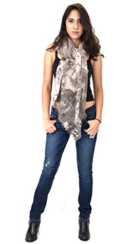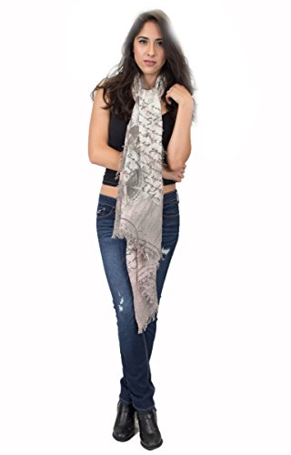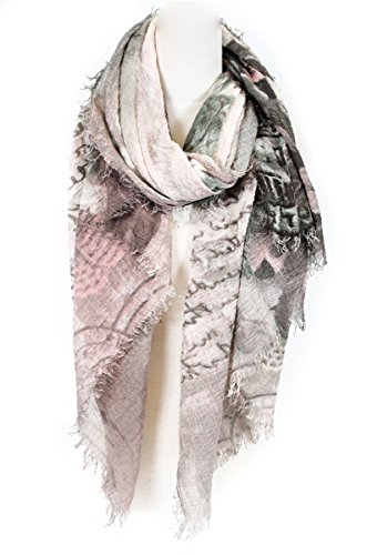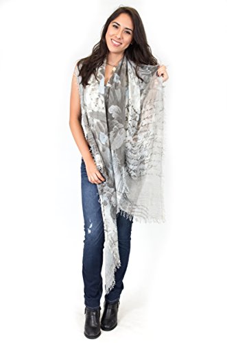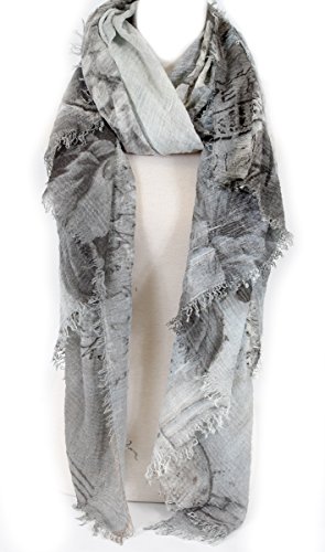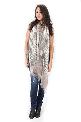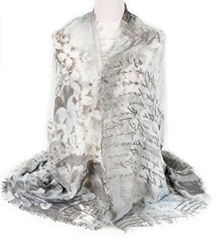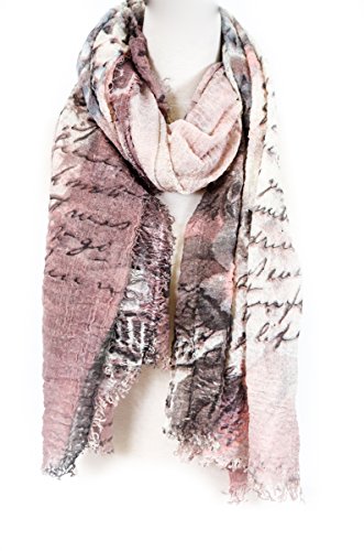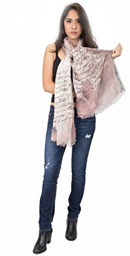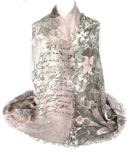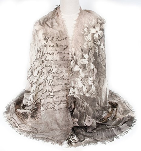 (Aleena)/Accessories/Cold Weather Accessories/DIRECT FROM USA/Soft Scarf with fringed edge all around, floral with letters, Viscose scarf, fashion scarf, mul...