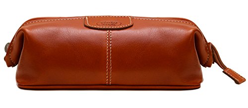 Product Description The Venezia Dopp Kit comes in five colors - Vecchio Brown, Olive (Honey) Brown, Black, Tuscan Red, and Orange. The zipper frame closure provides easy access to your toiletries. Made in Italy. 0