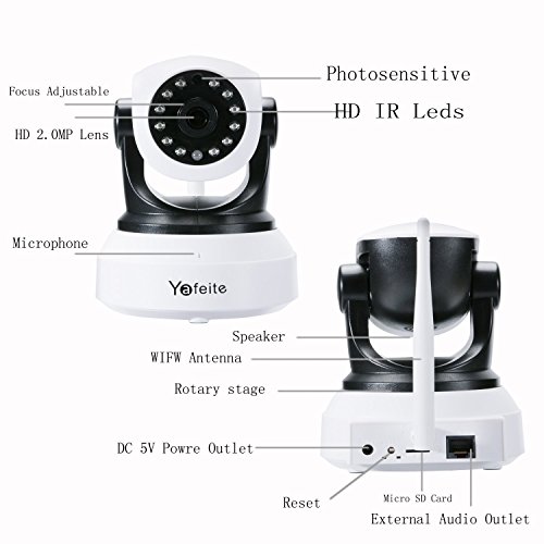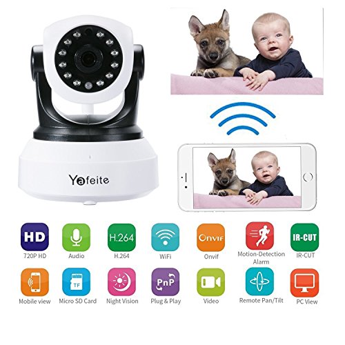 Yafeite IP Camera WIFI Camera 720P HD Used for baby/child/pet/nanny monitor Pan/Tilt Two-Way Audio and Night Vision 380° Black & White