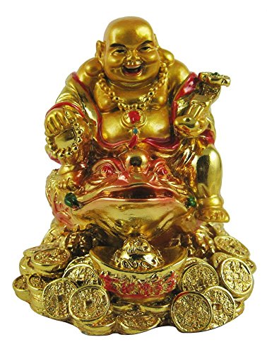 Creativegifts feng shui laughing buddha on money frog for health, wealth and happiness(8 X 6 X 4 CM )